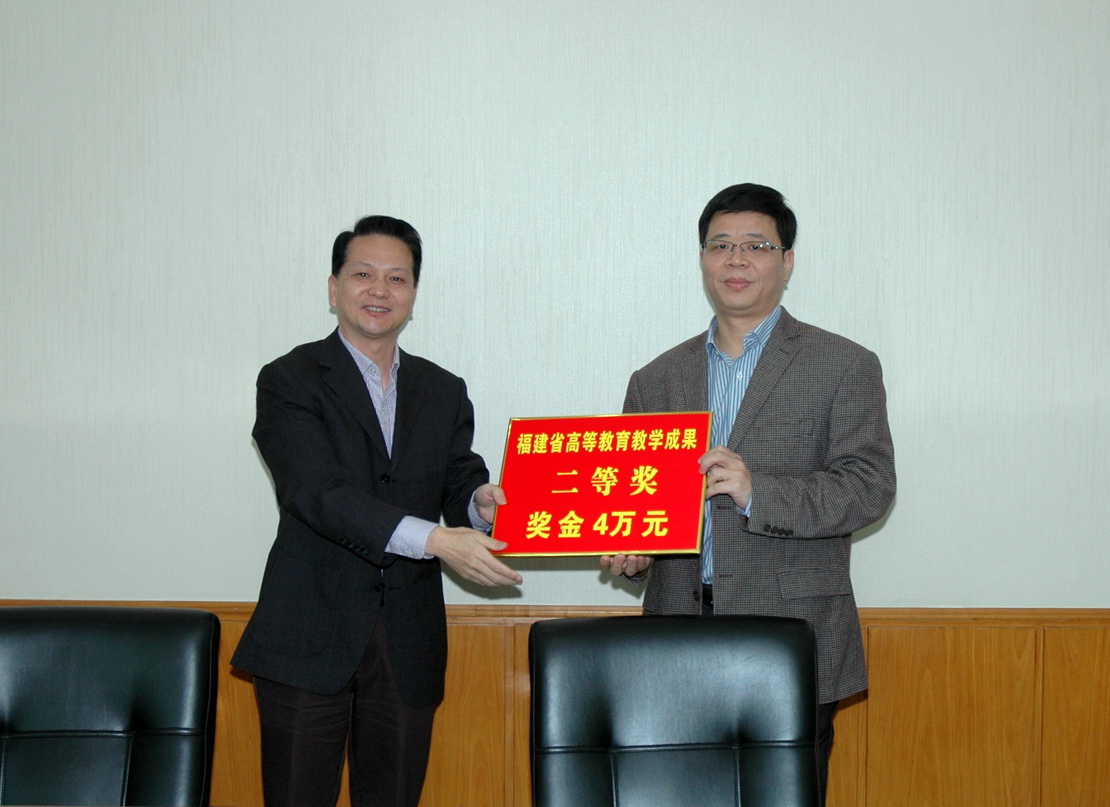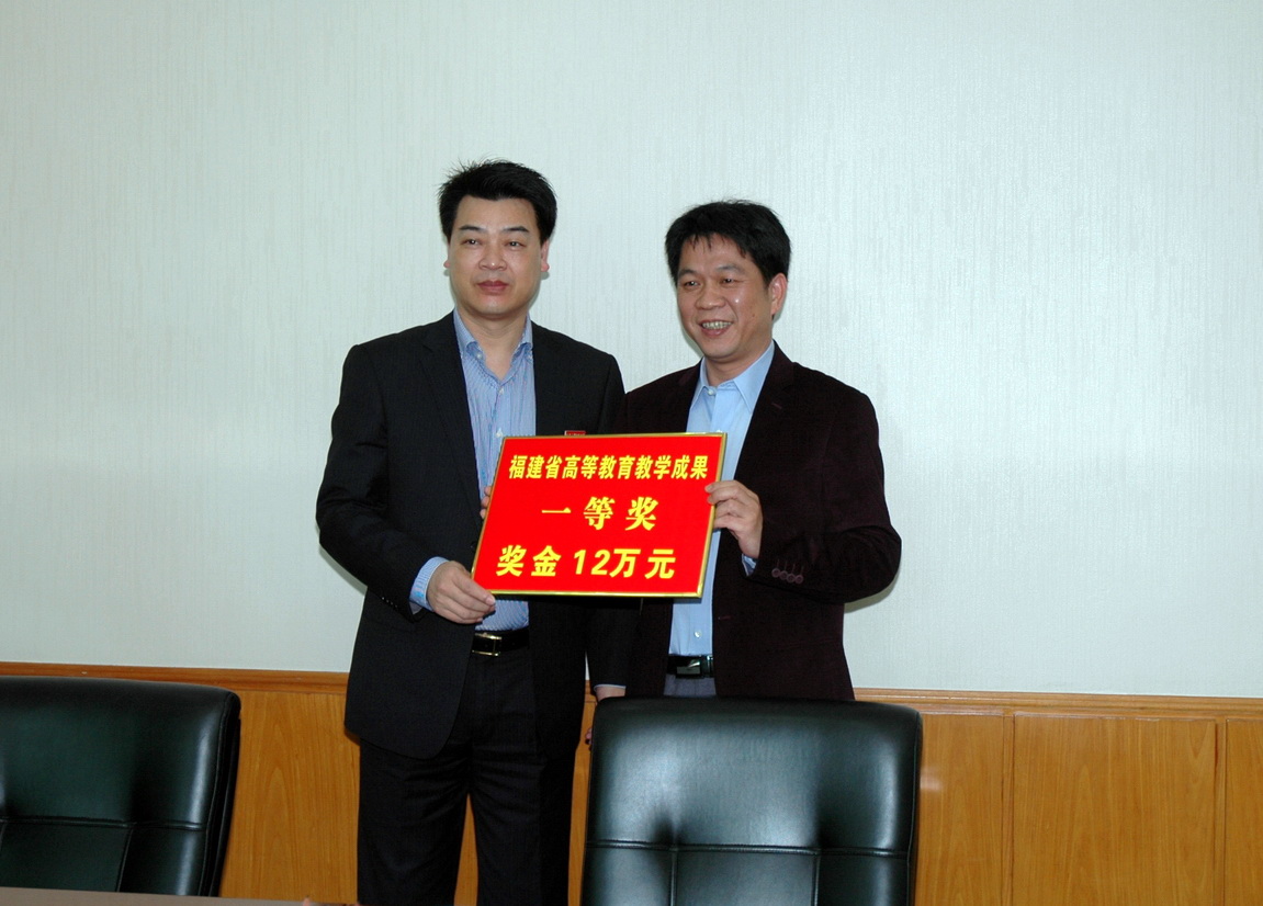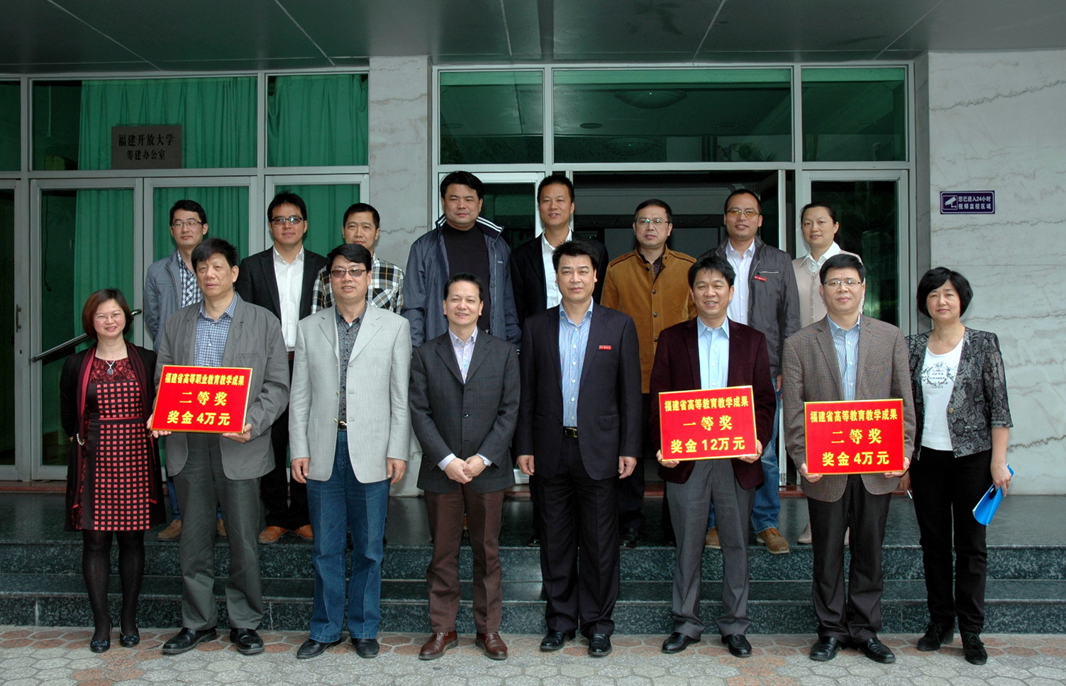 会上,陈展虹宣读了《福建省教育厅关于公布2014年福建省第七届高等教育教学成果奖项目的通知》和《福建广播电视大学关于表彰2014年省级教育教学成果奖的通报》。马国防、陈兴炎向获奖团队负责人颁发证书、奖金。