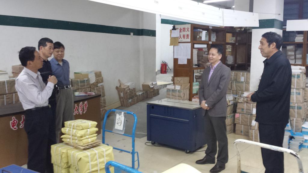 5月5日下午,陈兴炎问候教材发行服务中心工作在一线的全体员工,深入仓库实地察看教材征订、发行、管理等流程,并与部门负责人黎安国交流座谈。陈兴炎充分肯定了学校教材发行工作的意义。他指出,教材工作是教学过程中的基础性工作,是保证教学质量的重要一环;教材中心是学校面向基层教学点的重要服务窗口,做细、做实、做强服务工作,对推动学校转型升级、科学发展、跨越发展具有重要作用。他对教材中心的工作表示肯定,同时提出三点要求:一要增强服务意识,提高服务质量,建立上下联动机制,保证教学工作的正常开展;二要继续加强信息化建设,充分发挥新版教材管理系统的作用,提高工作效率;三要创新工作机制,优化工作流程,理顺与相关部门的业务关系,增强工作时效性。