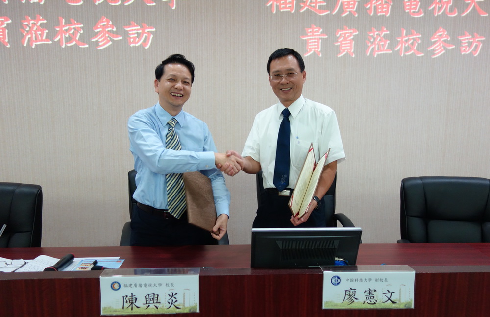 校长陈兴炎代表学校在与台湾中国科技大学合作意向书上签字