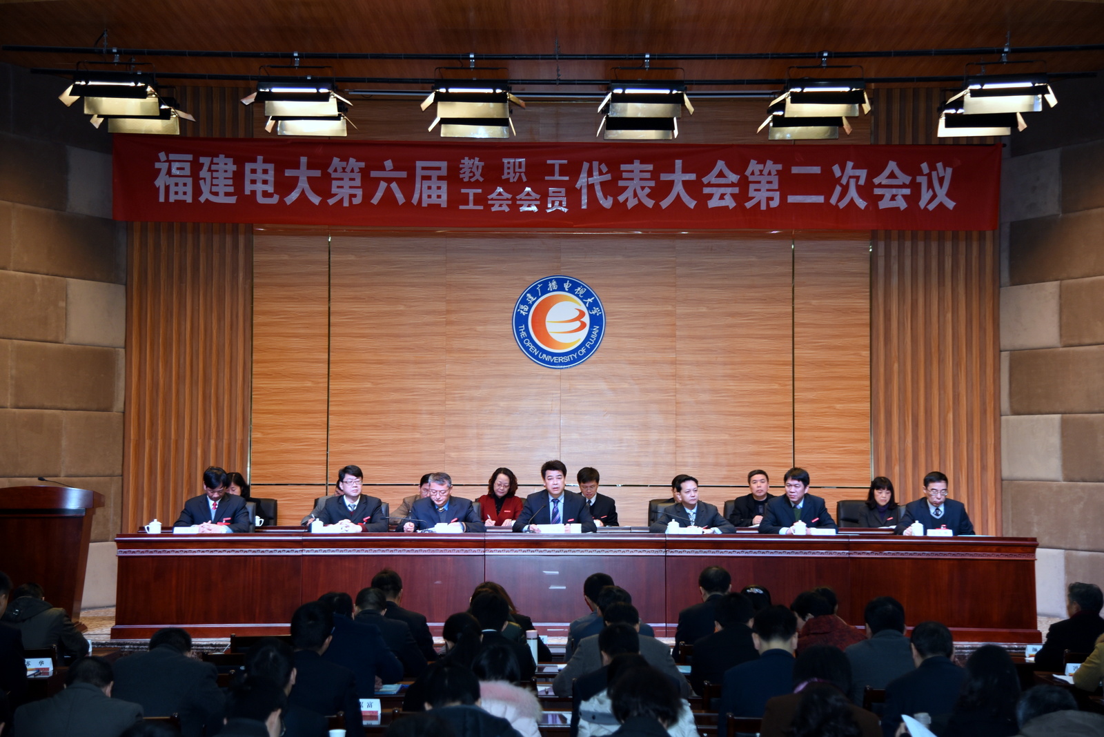 工会副主席薛峰、财务处副处长魏玉兰分别代表校工会和学校作了工会工作报告和学校财务工作报告。大会还书面提请审议《六届一次会议提案办理情况报告及六届二次会议提案征集情况的说明》、《工会经费审查报告》。全体代表大会后,代表团分组审议了学校工作报告、工会工作报告、学校财务报告、《福建广播电视大学章程》、《福建广播电视大学十三五规划》,并在第二次全体代表大会中审议通过了各项报告及文件。
