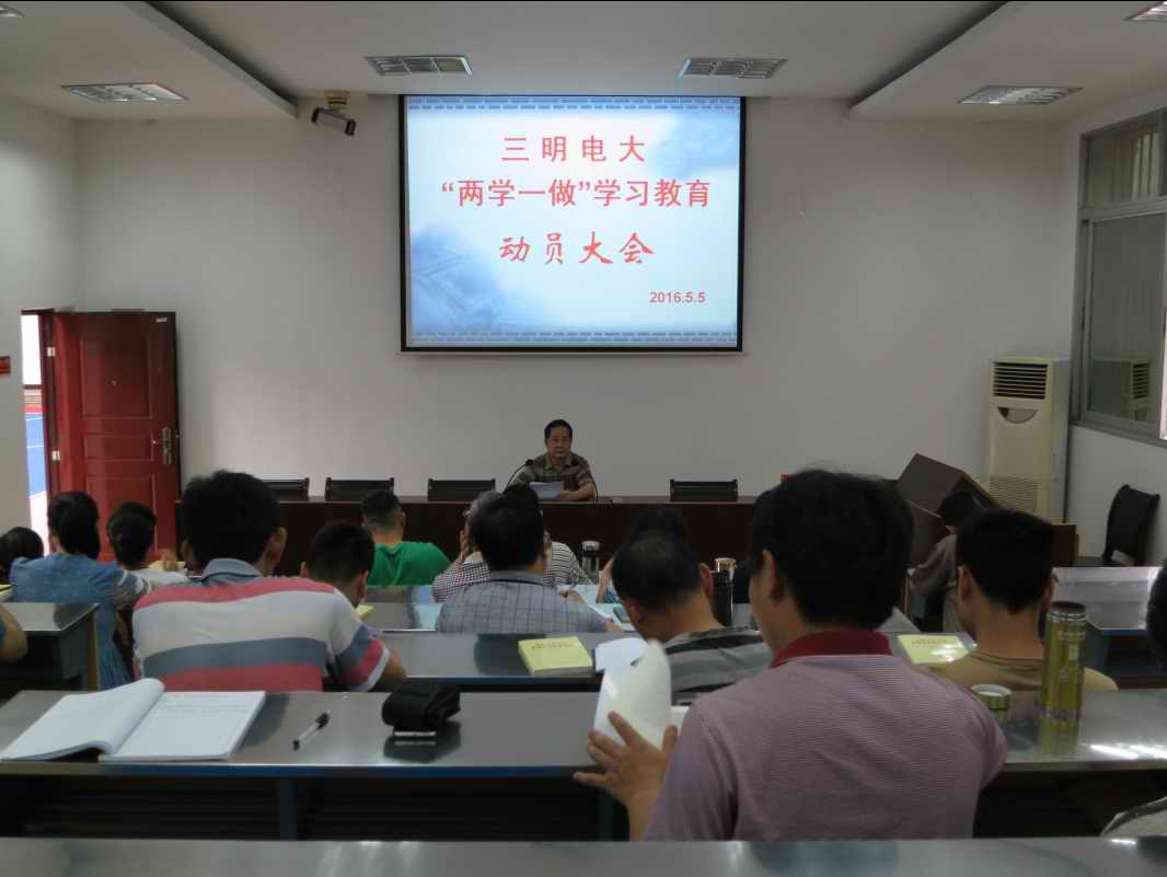 5月5日下午,根据市委、市委教育工委部署,三明电大召开“两学一做”学习教育动员大会。会议由校党总支书记、校长耿鸣主持并作了重要讲话,学校全体在职党员及部分退休党员参加会议。