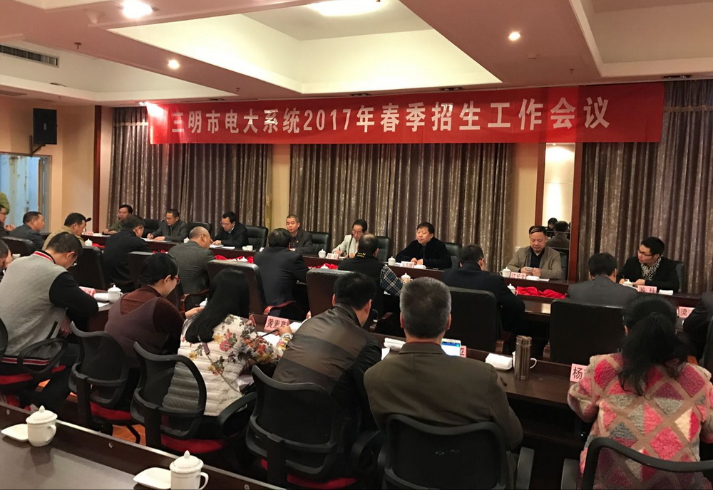为进一步做好2017年春季招生工作,全面部署全市电大春季招生工作,1月11日,三明电大系统2017年春季招生会议在清流召开。全市电大各分校校长、工作站站长、各县市电大招生负责人参加会议,省电大招生督导员吴东晖和招生办有关人员出席会议,清流县委宣传部部长廖祥初和教育局局长江长文到会致辞。会议由三明分校校长耿鸣主持。