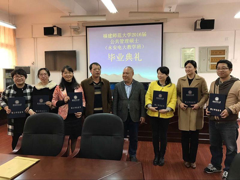 福建师范大学公共管理硕士(MPA)永安电大教学点于2013年7月由福建广播电视大学和福建师范大学合作下在永安电大开班,首批入学硕士研究生31人。采取集中面授与在职学习相结合的培养方式,利用周末和寒暑假进行集中授课。研究生课程教学按照福建师范大学的统一规范要求,由福建师范大学制定教学计划,选派专家教授到教学点为学员授课,保证教学质量。
