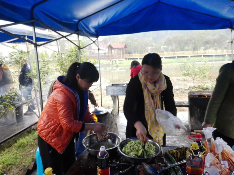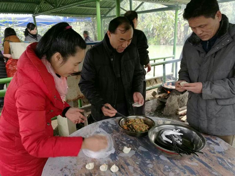 本次活动以踏青及野炊为主题,在清新的空气中,在悦耳的鸟鸣中,在望得见青山,闻得到绿水的大自然中,大家搭起灶,支起锅,生起火,围起桌子包水饺、展厨艺。瞧!这边的水饺下锅了,那边的盐水鸭飘香了,这桌的酒糟卤蛋入味了,那桌的牛腩土豆煲引得人频频探头……大家这桌尝尝,那桌品品,欢声笑语让鸟儿更欢唱,让花儿更灿烂。