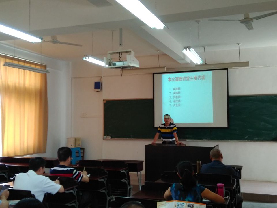 5月19日上午,永安电大在五楼多媒体教室举办道德讲堂活动。本次道德讲堂活动由校党支部副书记章文捷主持,全体教职工参加活动。