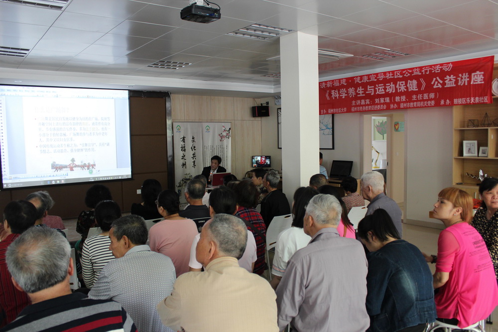 为提高居民身体素质,传播和普及健康理念,将科学养生与运动保健有机结合起来。4月28日下午,福州市社区大学在鼓楼区乐天泉社区举办《科学养生与运动保健》公益讲座,邀请福建中医药大学附属康复医院主任医师刘家瑞教授担纲主讲。
