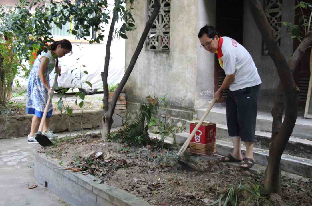 老师们手拿扫帚、铁锨等清扫工具在校园里清理绿化带,认真细致地铲除卫生死角垃圾。大家发扬“不怕脏、不怕苦、不怕累、不怕热”的精神,撸起袖子加油干,个个干得是热火朝天、汗流浃背。
