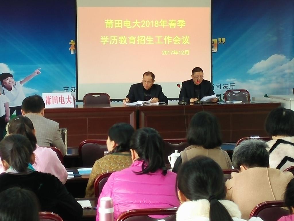 2017年12月29日,福建电大莆田分校召开2018年春季招生工作会议。学校领导郑宗太、苏健,以及全体教职员工参加了会议。会议由副校长郑宗太主持。