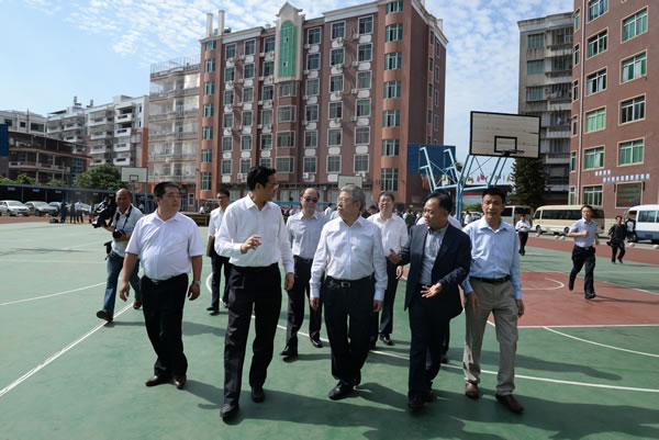 国务院扶贫办刘永富主任(前排右3)、时任福建省副省长陈荣凯(右4)等领导莅临我校检查指导