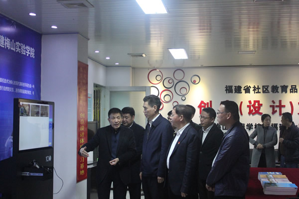 2017年3月14日福建省副省长李德金带领省委、省政府脱贫攻坚春季攻势行动调研检查组一行莅临我校检查指导,李副省长充分肯定我校《东西部创业园》是对创业致富带头人的强大孵化功能是一个创新特色,是梅山的一张名片;培训基地设在梅山实验学院,校园很漂亮、环境很好。
