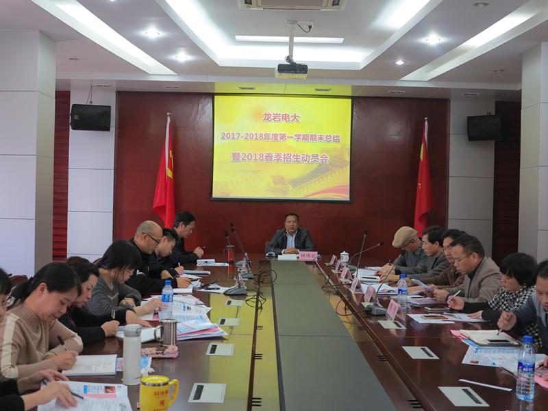 1月19日下午,龙岩电大组织召开2017年度工作总结暨2018年春季招生动员会,全体教职工参加了会议。会议由党支部书记林伟能主持。