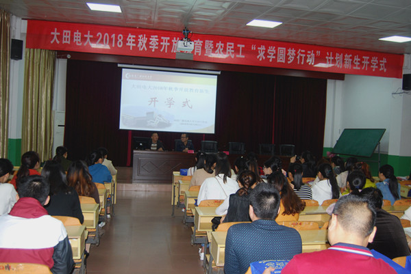 10月20日上午,大田电大2018年秋季新生暨“农民工求学圆梦行动”计划开学式在县教师进修学校一楼报告厅举行,全体教师及2018年秋季新生共计90多人参加。开学式由工作站副站长刘方主持,站长俞建营出席开学式并讲话。