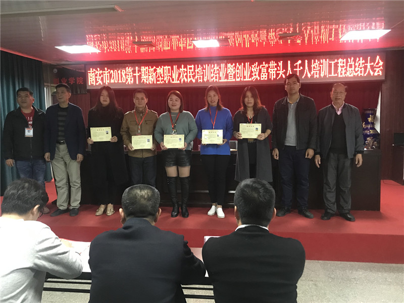 2014年10月,学院承办国务院扶贫办贫困村创业致富带头人培训,担负教学设计实施培训和教学总监,已为全国六个省80多县市培训创业致富带头人3800多人,采用“1+11”创业致富带头人创新培训模式,2016年获全国脱贫攻坚奖;与江西石城县共建“党建+创业致富带头人项目”,获2018年全国脱贫攻坚创新奖,为南安市创建全国农村职业与成人教育示范县作出应有贡献。