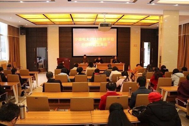 2月25日,宁德电大召开2019年新学期全体教职工大会,部署2019年学校重点工作,推进事业改革发展取得新成效。宁德电大党委书记、校长叶祖庚参加会议并讲话,党委副书记陈丽银主持会议。