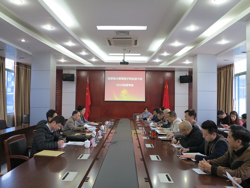 3月18日下午,龙岩市委组织员办黄占明主任率考核组一行到龙岩分校开展2018年领导班子和处级干部年度考核工作。学校在职在编教职工参加了会议。党支部书记林伟能主持了会议。