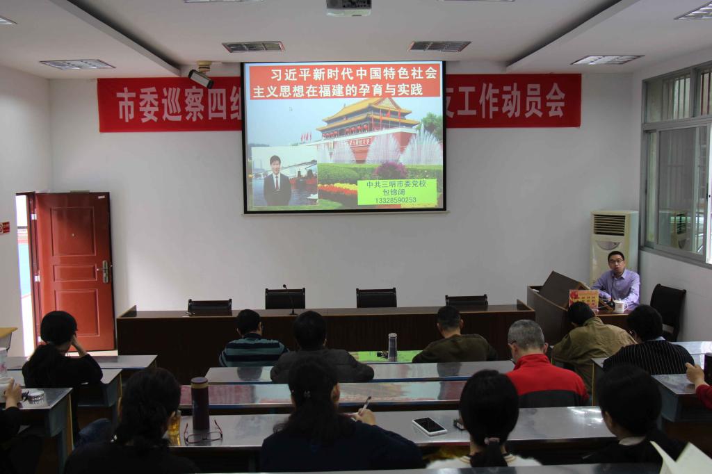 为深入学习贯彻习近平新时代中国特色社会主义思想和党的十九大精神,4月22日下午,三明电大举办党总支中心组学习,邀请三明市委党校经济学教研室主任包锦阔副教授作了题为《习近平治国理政思想在福建的孕育与实践》的专题学习讲座。电大全体教职工参加了学习。