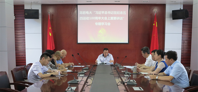 6月3日上午,龙岩电大举行“习近平总书记在纪念五四运动100周年大会上重要讲话”专题学习会。全体中层干部参会,党支部书记林伟能主持。