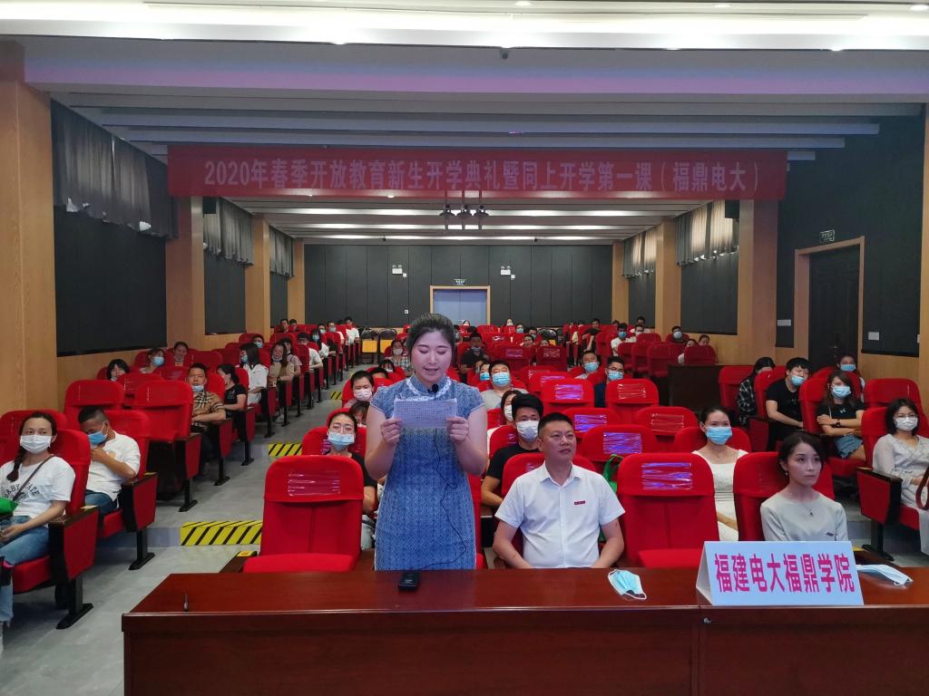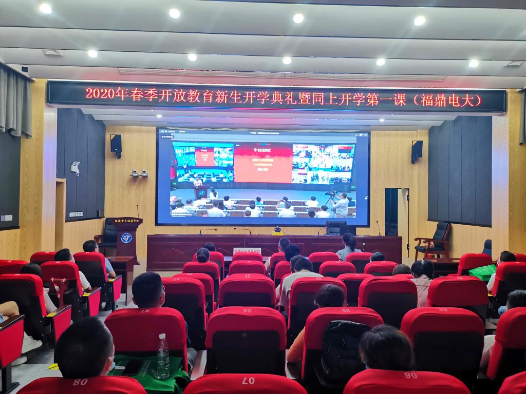 5月30日上午,福建电大举办全省电大系统开放教育新生开学典礼暨同上开学第一课,省电大设立主会场,包括福鼎学院在内的70个市县电大设立分会场,主、分会场通过双向视频互联互通,并向系统师生和社会实况直播。电大福鼎学院领导班子、新生班主任和新生们在福鼎电大智慧教室分会场参加典礼。