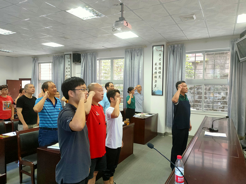 会上还举行了预备党员入党宣誓仪式。组织委员宣读接收预备党员通知书,总支书记陈智强带领刘昌、刘安全、毛锋晨等三位预备党员郑重宣誓,全体党员重温入党誓词。