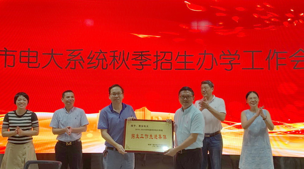 副书记郑少俊宣读了《泉州电大关于表彰开放教育招生工作先进集体的决定》和省电大《关于通报表扬2020年春季开放教育招生工作先进集体和优秀个人的决定》。陈向荣为获奖的工作站(学院)代表颁发奖牌。