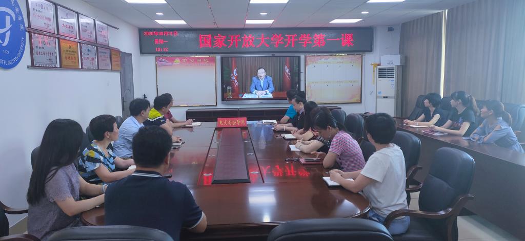 8月31日上午,国家开放大学党委常务副书记曹国永以视频直播方式主讲“开学第一课:创建世界一流开放大学”。学院组织教职员工在五楼会议室收听收看,学员们通过多平台网络渠道远程收看和学习了国家开放大学开学第一课。