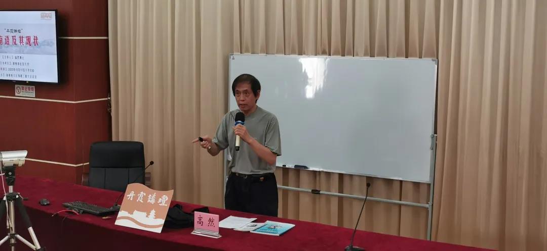 随后,高然介绍了漳州话在语音以及词汇运用上的变化,提出本地人的闽南语不纯正甚至音调错误的问题。他分享了自己调研闽南各地以及台湾说闽南语的情况,但调研结果让他表示十分担忧。他说:“回到故乡,看到这里说闽南话的人越来越少,很多孩子甚至都不会说闽南话,本地话本地人自己都不愿意说。我看得很心急也很心痛,这是祖宗留给我们的财富和宝藏啊。” 他对闽南语在青少年这一代传承链的断裂现状感到十分的焦虑和着急,一直在身体力行地推广闽南语, 为闽南语的传承和推广做了很多的努力。在讲座最后的互动环节中,来自漳州不同年龄层,不同单位和社会团体的听众都提出了自己的问题和困惑,高然一一做了详细而生动的解答,并与大家交流了自己对闽南语的一些看法。