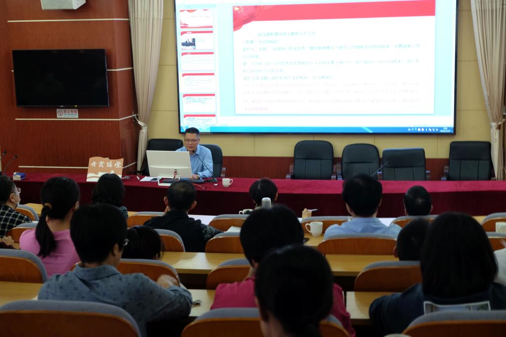 11月27日,漳州电大在“丹霞讲坛”开展《民法典修改和新增内容概要》法治专题辅导讲座,漳州市检察院人民监督员、市委宣传部《民法典》讲师团成员、漳州电大法学讲师林海健为大家授课。讲座由校党委副书记林之枫主持,校党委中心组成员、全体教职员工及部分学生聆听了讲座。