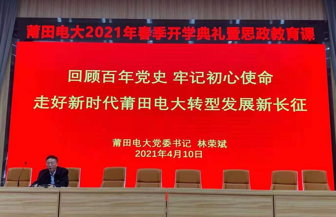 随后,林荣斌以《回顾百年党史 牢记初心使命 走好新时代莆田电大转型发展新长征》为题,为新生讲授了中国共产党发展的艰辛历程及为民谋幸福的初心和使命,让学生深受教育 ,他希望学生把自己个人的理想追求融入党和国家事业中,在改革发展的浪潮中建功立业。他还为学生介绍电大的学习模式,鼓励学员克服工学矛盾,在当前的新起点上,勤奋学习、担当作为。