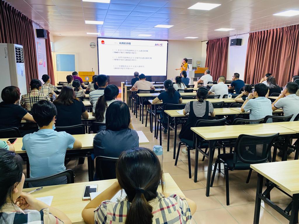 讲座中,詹碧英通过“光辉的历程”“伟大的奇迹”“历史的启示”三个模块,脉络清晰、逻辑严谨、内容丰富,深入浅出详地讲述了新中国从成立之初的百废待兴到遭遇严重挫折再到改革开放进入新时代的辉煌历程、新中国成立以来在经济发展、民生改善、科技进步、制度创新等方面所取得的巨大成就,回答了关于中国共产党为什么“能”、马克思主义为什么“行”、中国特色社会主义为什么“好”的问题,最终得出了我们必须坚持党的领导、坚持把马克思主义基本原理同中国具体国情相结合,坚持和发展中国特色社会主义的宝贵经验和历史启示。