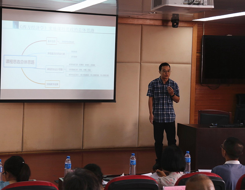 经过前期的“课程思政”教学设计方案评选,此次参加现场说课比赛环节的教师共有八名。参赛教师们结合各自的专业课程特点,深入挖掘各门课程蕴含的思政元素,在15分钟的现场说课展示中,从教学目标、教学设计思路、思政元素融入点等方面展开阐述,展示了各自的教学风采及理论功底。