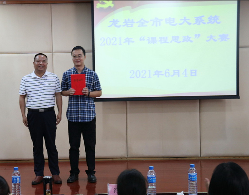 邓晓峰老师荣获一等奖,学校党支部书记林伟能为其颁奖