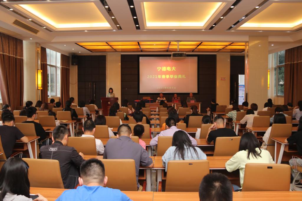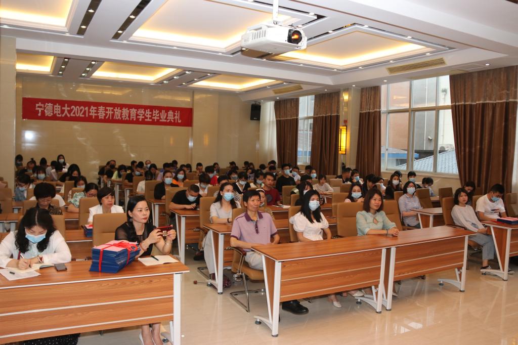 2021年6月5日上午,宁德电大举行2021届春季开放教育学生毕业典礼,毕业生代表共计100多人参加。宁德电大党委书记、校长叶祖庚出席并讲话,副校长王晓飚主持典礼。