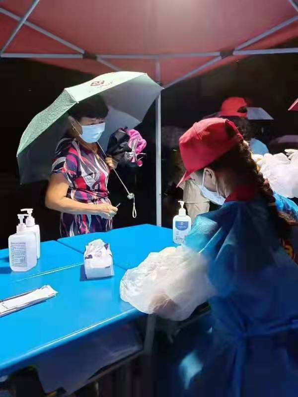 她说:枫亭镇是疫情中高分区,见到疫情的情况自愿加入志愿者尽自己的一份力!发信息时说:连续几天都在做核酸,马上进行第九次核酸采集。