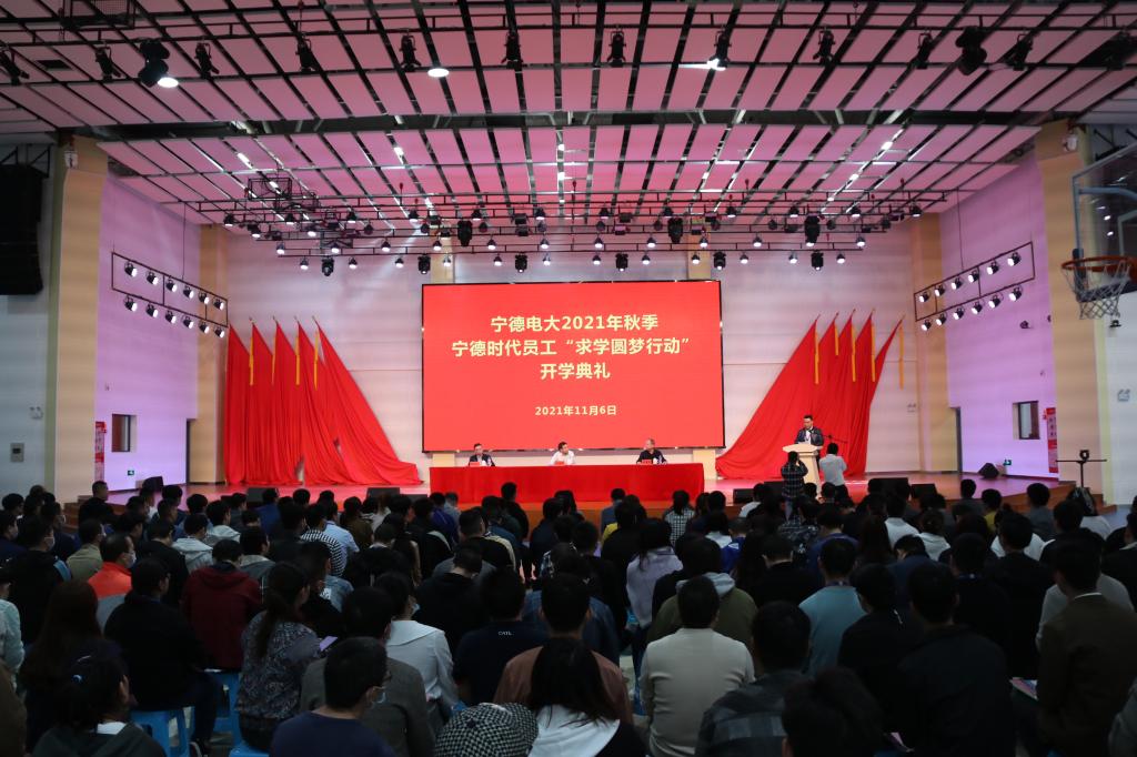 2021年11月6日下午,宁德电大2021年秋季宁德时代员工“求学圆梦行动”开学典礼在宁德时代湖西篮球馆举行。宁德电大党委书记、校长叶祖庚,宁德时代工会主席詹书知出席典礼并讲话,宁德电大党委副书记李健平主持典礼。