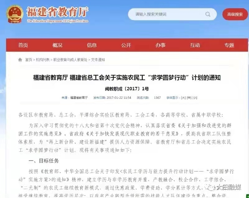 大田电大于2018年春季开始实施农民工“求学圆梦行动”计划。自实施以来,共有386名农民工就读大田电大获得学费补助,已获补助金额达79.1万元,让农民工既提升了学历,又享受到了实惠,打通了“教育惠民”最后一公里。