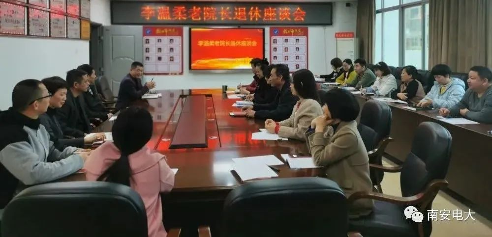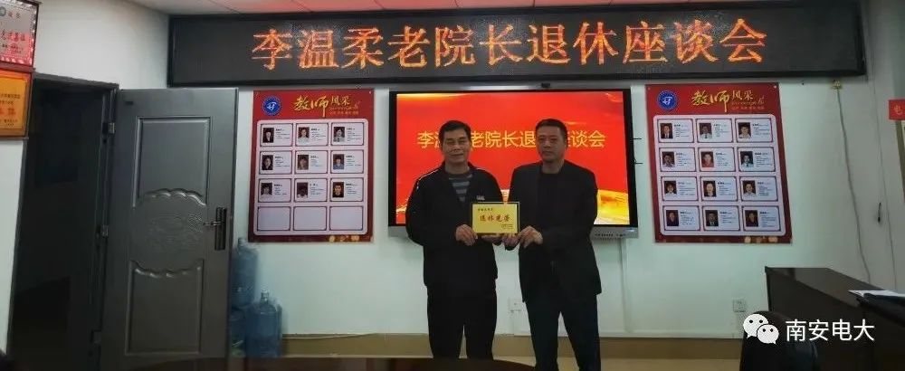 1月5日下午,南安电大在五楼会议室召开李温柔老院长退休座谈会。全体教职员工参加了座谈会,南安电大书记尤春生主持,院长陈宗辉为老院长颁发“退休光荣”牌匾。