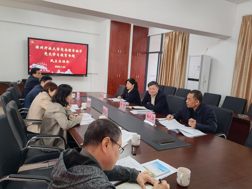 根据市委、市委教育工委的统一部署,1月20日下午,漳州开放大学党委领导班子在修为楼508会议室召开党史学习教育专题民主生活会,会议主题是“大力弘扬伟大建党精神,坚持和发展党的百年奋斗历史经验,坚定历史自信,践行时代使命,厚植为民情怀,勇于担当作为,团结带领人民群众走好新的赶考之路”。市委第九督导组、教育工委委员、教育局党组成员、副局长杜人江,漳州市教育局机关党委副书记、思政科负责人陈月娇等到会指导。漳州开放大学党委书记、校长李然主持会议,校领导林之枫、陆志洪、吕峰鹏,党委委员张煜炎、陈毅文、吴卫东参加会议。