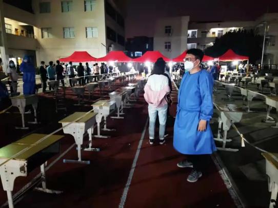 22春土木工程本科班王泽凯在泉州师范附属中学操场组织市民做核酸检测