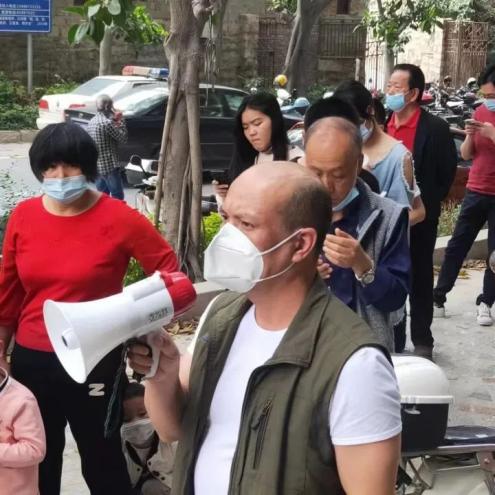刘伟洪在核酸检测现场维护秩序