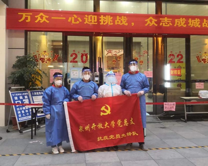 疫情就是命令,防控就是责任,使命就是担当。面对疫情的再次凶猛突如来袭,为更有效阻断疫情传播链,守护人民健康安全,泉州开放大学党总支第一时间响应市委、市政府的决策部署,迅速发出《倡议书》,号召党员干部、教职工积极投身抗疫、参与志愿服务,深入一线,联防联控,与社区工作人员并肩作战,抗击疫情,为守护家园安全和群众生命健康,筑起了一道又一道“铜墙铁壁”,充分发挥党支部战斗堡垒和党员先锋模范作用,以实际行动让党旗飘扬在抗疫一线。