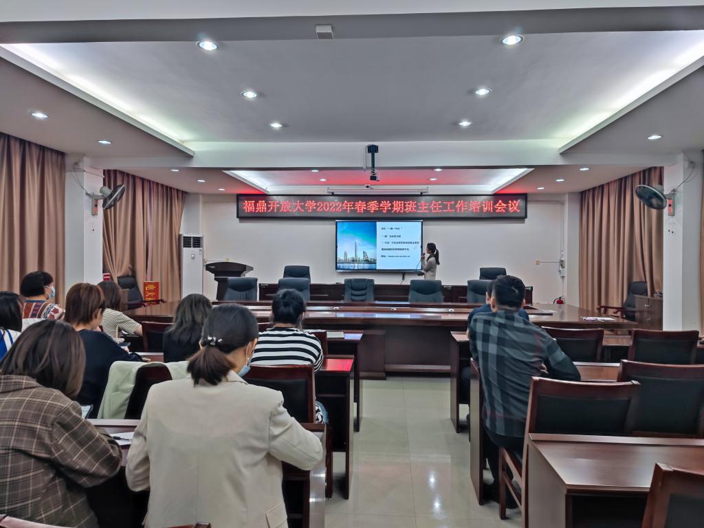 为进一步加强教师队伍建设,全面提升班主任素养和业务水平,促进班主任做好导学、助学服务工作,4月28日下午,福鼎开放大学举办2022年春季学期班主任工作培训会,副院长唐文奕主持会议。
