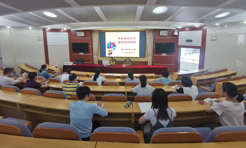 4月28日上午,漳州开放大学举行学位论文指导教师培训会。漳州开放大学党委副书记林之枫出席培训会,并做开训动员;教务处副主任伊赛梅作专题培训。