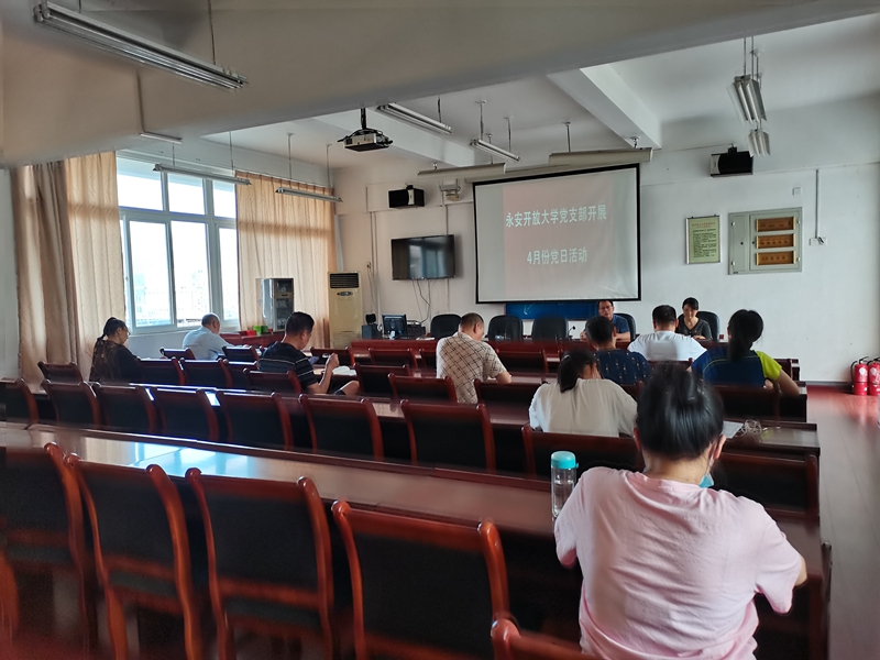 4月28日下午,永安开放大学党支部在三楼会议室组织全体党员开展四月份党日活动。本次党日活动主要有两项内容:一是由党支部副书记章文捷领学习近平总书记致首届全民阅读大会举办的贺信;二是观看视频《学习身边榜样》:勇攀科研高峰 培养更多科技人才。支部全体党员参加活动。