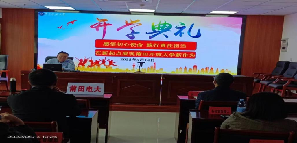 2022年春季新生开学典礼,是莆田开放大学搬迁到新校区后的一件大事,学校精心组织,按疫情防控要求落实相关防疫措施,到场参会师生全程佩戴口罩,未到场师生通过线上收看同步直播。