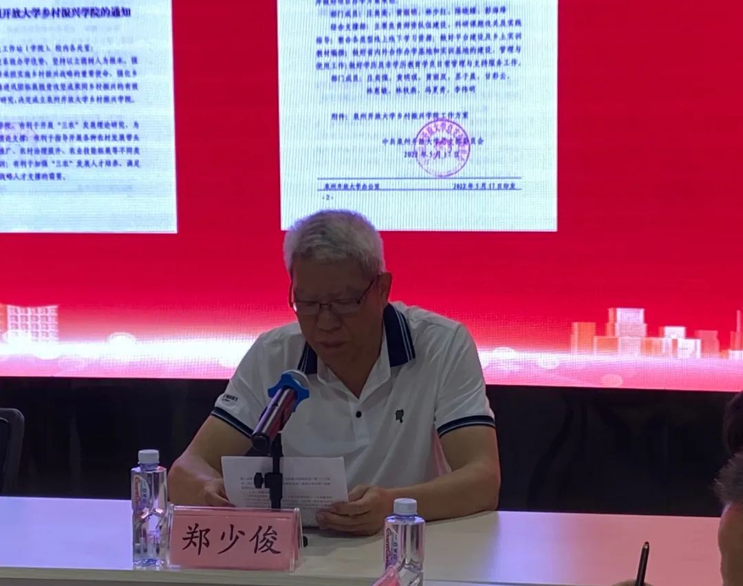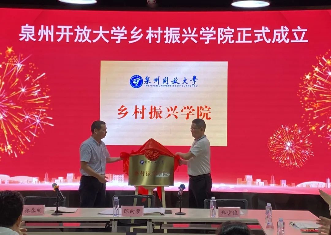 仪式上,郑少俊宣读《关于成立泉州开放大学乡村振兴学院的通知》,陈向荣与林春成共同为乡村振兴学院揭牌,乡村振兴学院成员现场见证。