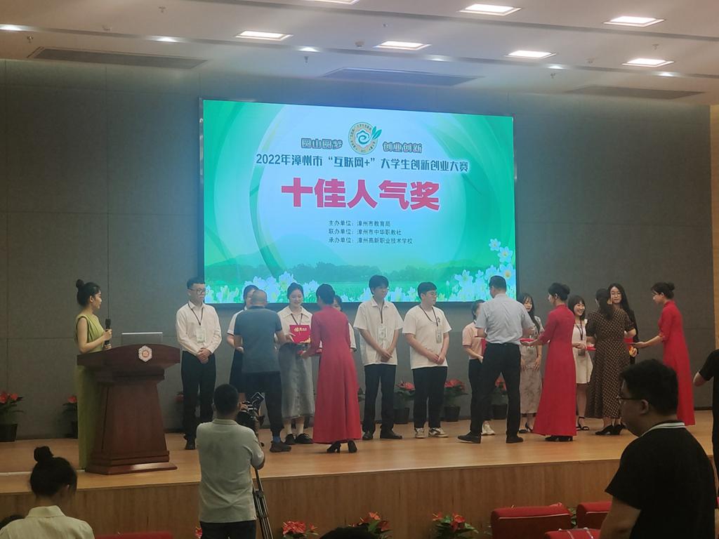 漳州开放大学2021秋季茶艺与茶叶营销专业(专科)学生简青燕负责的《乡村振兴与大健康同行》项目和2021春季工商管理专业(本科)学生杨达锋负责的《全国首创之马克笔智能检测系统》项目,在柯菁和林贤元老师指导下参加比赛,并进入决赛,经过激烈角逐,从128个参赛项目中脱颖而出,分别获得金奖(位列第一)和银奖的好成绩。《乡村振兴与大健康同行》同时获得“十佳人气奖”。