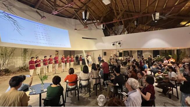 “秋风起兮白云飞,草木黄落兮雁南归。”亲切的闽南乡音从舞台上响起,盘旋在木制框架的闽南古厝上方,现场的观众朋友们在怀旧古朴又颇具现代美学设计的艺术空间里观看了老年学员们带来的闽南语古诗诵读、闽南谚语展演、闽南语童谣轻剧《刣十二生肖》、闽南传统童谣表演《按怎伊甲会唱歌》(为何它才会唱歌)等精彩纷呈的表演节目。活动受到观众朋友的好评和欢迎,现场鼓掌声、欢笑声不绝于耳。