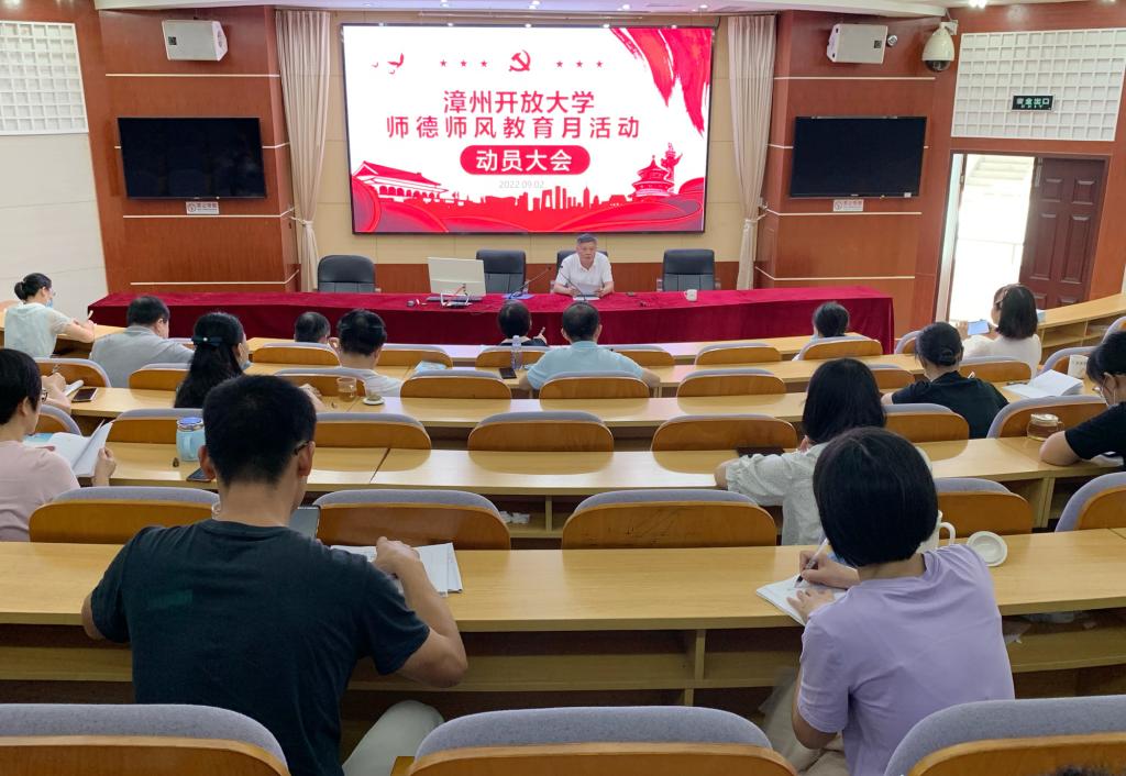 9月2日上午,在传统中秋佳节和第38个教师节即将到来之际,漳州开放大学在行知楼三楼会议室举行党委书记讲廉政党课暨师德师风教育月活动动员会,学校领导、全体在职党员和科级以上干部参加,会议由学校党委书记、校长李然主持主讲。