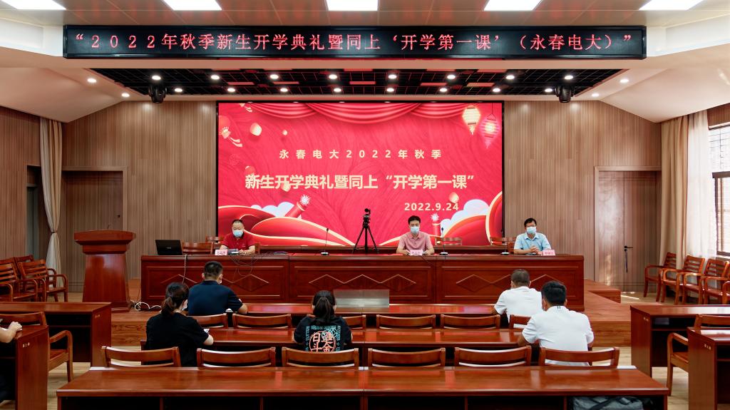 9月24日上午,福建开放大学举办2022年秋季新生开学典礼暨同上“开学第一课”,永春电大在县教育中心六楼会议室设立分会场,以线上线下相结合的方式参加活动后,在分会场举办永春电大2022年秋季开学典礼暨同上“开学第一课”,永春县教育局局长陈志宏、三级调研员李锦江,永春电大全体教职工及2022年秋季部分新生参加。