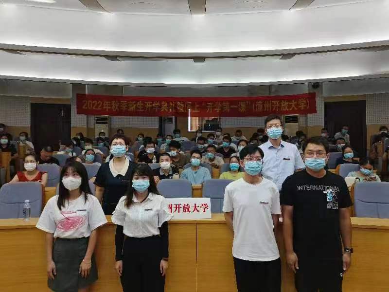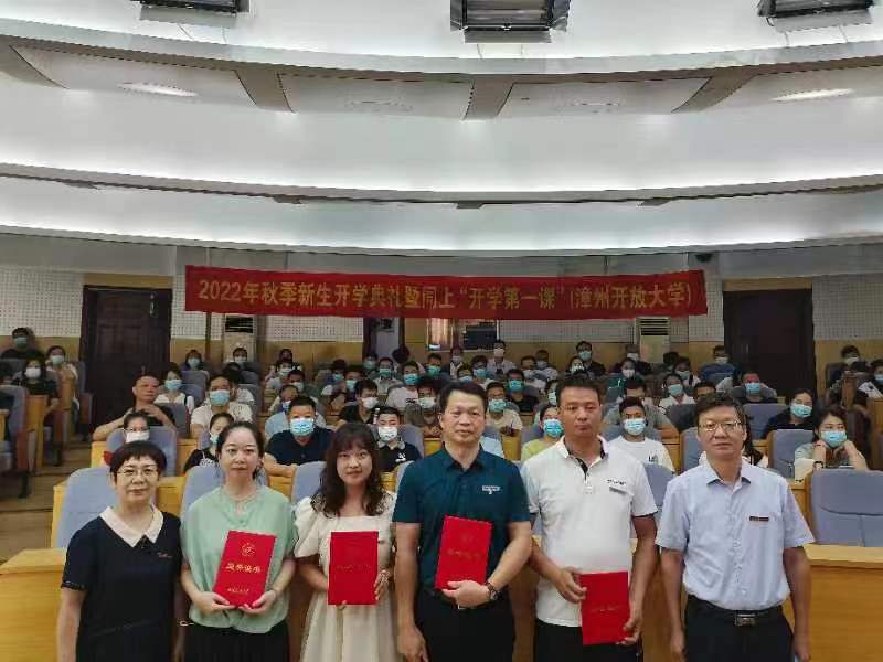 开学典礼在嘹亮雄壮的国歌声中拉开帷幕。省校表彰了2022年福建开放大学优秀学生干部。漳州开放大学王锡富、沈小玲、朱振光、陈丽丽四位同学获此殊荣,校领导为获奖学生干部颁发了荣誉证书。来自福建开放大学及基层办学单位的新、老生代表、优秀学生干部代表结合自己的学习、工作实际作了热情洋溢的发言,新生代表对入学后的学习生涯提出了规划,进行了展望。老生代表和优秀学生干部代表对新生给予了祝福和勉励,提出了良好的学习建议。校领导为新生代表佩戴了校徽,新生进行了入学宣誓。省校党委书记陈兴炎对新同学表示欢迎,并介绍了学校坚守“为党育人、为国育才”初心,全面落实立德树人根本任务,贯彻“自强弘毅 励学敦行”校训精神,营造“人人皆学、处处能学、时时可学”学习环境的办学实践。党委副书记、校长吴国荣以《完整准确全面贯彻新发展理念学习体会——中国共产党百年史是一部创新史》为题,为新生上“开学第一课”。